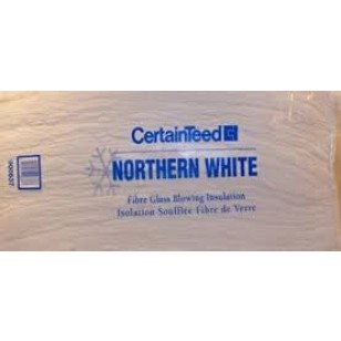 Northern White Fibre Glass Blowing Insulation is used in residential and commercial construction as a thermal and acoustical insulation. It is designed for pneumatic installation in open attic or ceiling plenum areas with flat flooring or up to a maximum slope of 4.5:12.